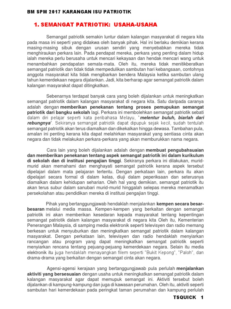 Bm Spm 2017 Karangan Isu Patriotik Pdf